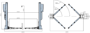 Den monteras med två robusta pelare utan golvbalk mellan, vilket gör att du obehindrat kan förflytta dig och din verktygsvagn under fordonet när du arbetar. Tack vare den trådlösa förbindelsen mellan pelarna uppnås snabb och stabil dataöverföring, och synkroniseringen sker med den senaste trådlösa styrtekniken.