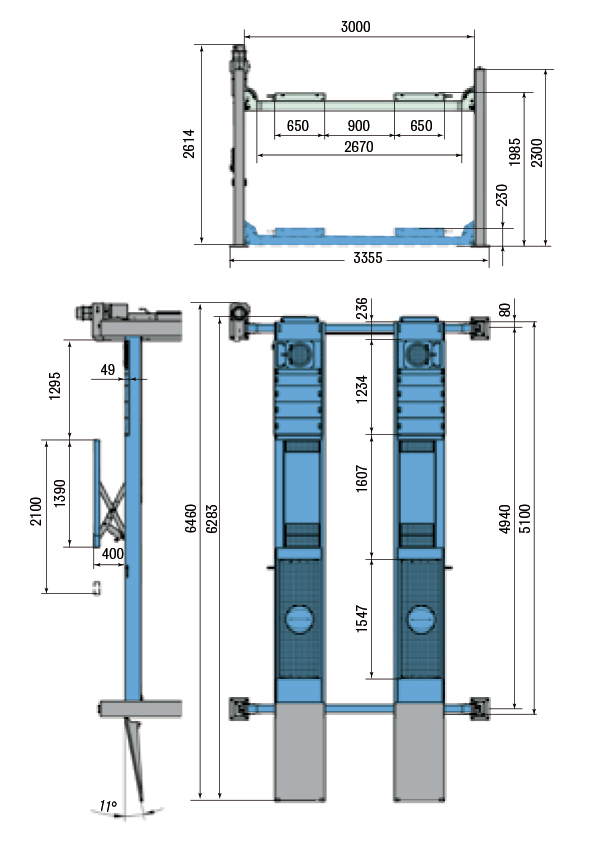 4-pelarlyft med med inbyggd saxlyft
