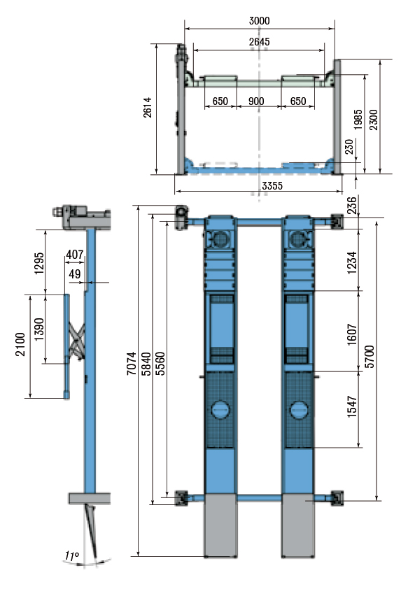 4-pelarlyft med med inbyggd saxlyft