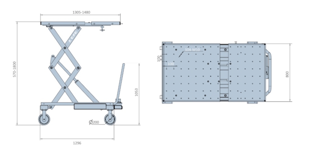 Mobilt lyftbord utformat för demontering och fixering av batteripaket för elfordon samt motor, växellåda, drivaxel, bränsletank, fjädring, konsol och chassikomponenter i traditionella fordon.