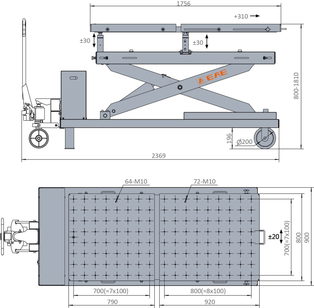 Detta mobila lyftbord är designat för demontering och fixering av batterier i elektriska fordon samt motor, växellåda, drivaxel, bränsletank, upphängning, konsol och chassikomponenter i traditionella fordon.