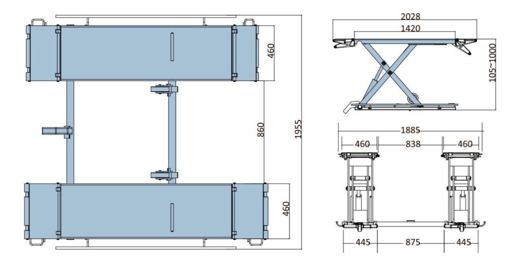 Denna låglyft har en lyftkapacitet på 3 ton och en maximal lyfthöjd på 1 meter. För ökad säkerhet är låglyften utrustad med elektriska spärrar som skyddar både användare och fordon under lyft.
