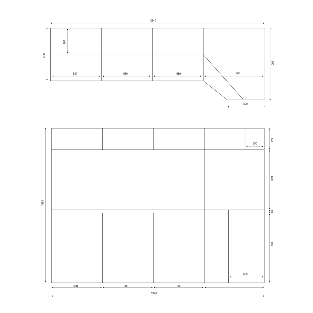 1 st hörndel (passar att montera på båda sidor om bänkskivan), bredd/djup mått 84 cm