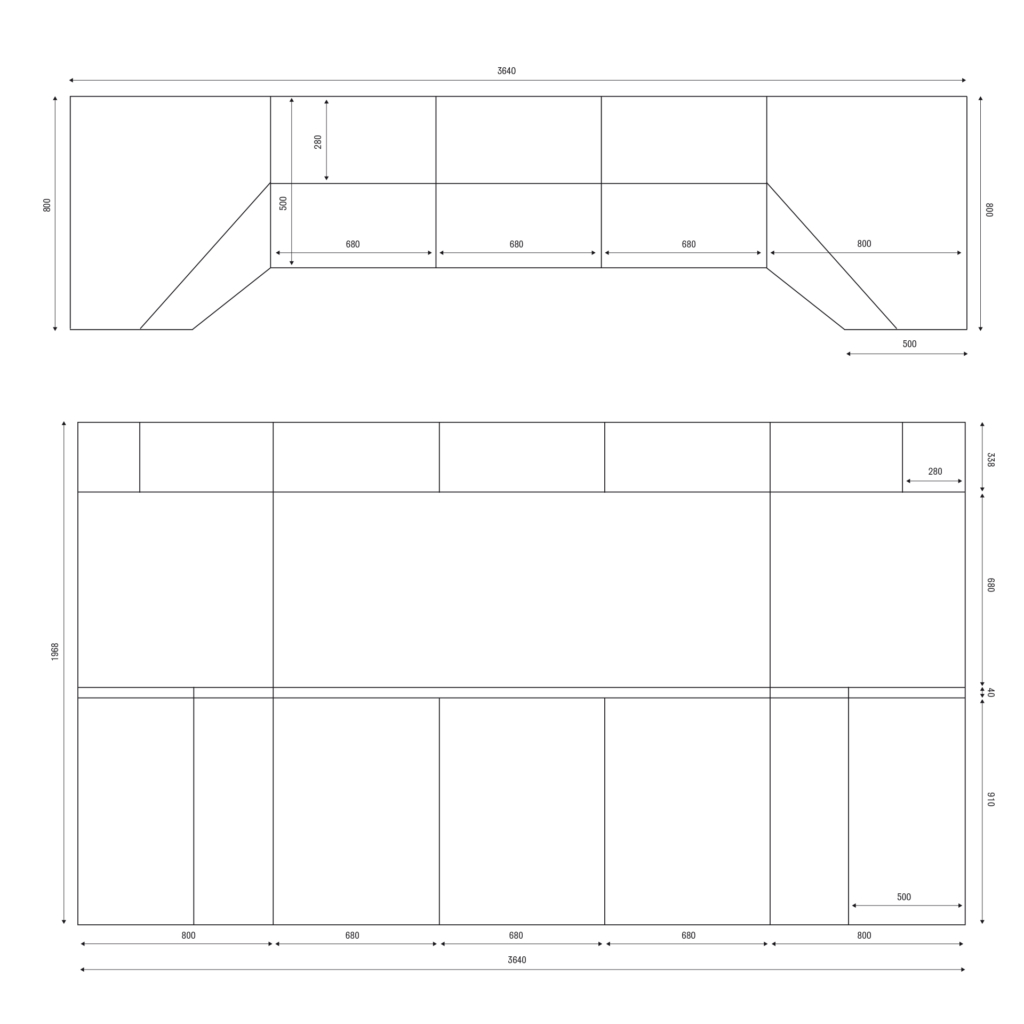 Dimension 3640 x 500 x 1968 mm